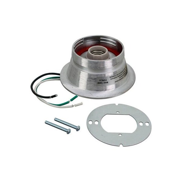 lamp housing assembly 100 watt max can be used in commercial cooking hood ul and nsf rated suitable for use in wet locations flange base 5-1/2" od uses new style socket # 38-1325