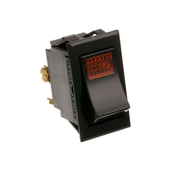 [ rocker switch w/ amber light ][ fits hole 7/8 x 1-1/2 ] [ on/off ] [ dpst ] [ terminals 4 (screws) ] [ volt/amp 20a/250v, 250v lamp ][ color amber light/black] note: for switch kit for cres-cor use # 42-1369
