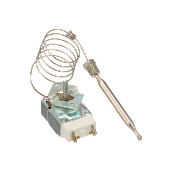 rx t'stat w/ 1/4" bpst ( british standard pipe taper) stuffing box. Interchangeable with npt threads at less than hydraulic pressures. temp 250-375, cap 36", bulb 3/8" x 3-7/8" tin/zinc, mount 11 verticle. gen use dial # 22-1006 black & silver t'stat knob [ 2" dia ] [ off-400-200] [mount .187"] [position 4-way] falcon fryer g1830, g1860
