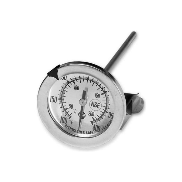 stainless steel candy / fryer thermometer 100 to 400 degrees 2-1/4" dial, 5-1/2" long 5" probe