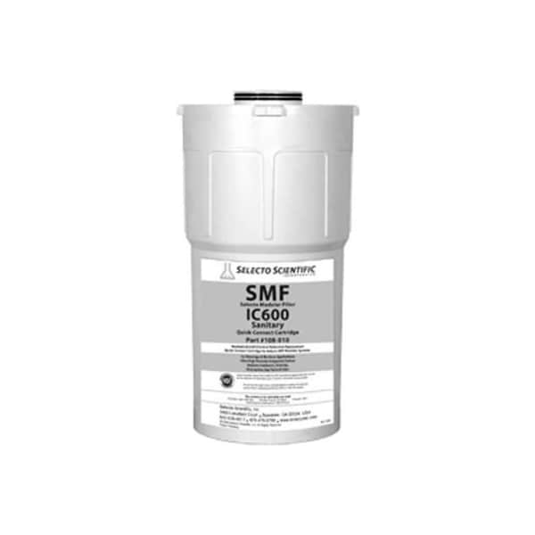 selecto smf ic600 filter cartridge for fountain, coffee, tea, juice, 1 carbonator 50,000 gal chlorine 15,000 gal chloramine flow rate 2.5 gpm reduces dirt, chemicals and chloramines filter media hollow carbon 0.5 micron rating certified nsf / ansi std. 42 for filter head # 76-1192