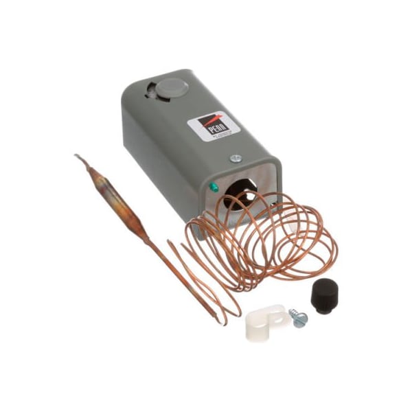 johnson control # a19abc-24c electro-mechanical thermostat, -30 to 100 f, adj diff 3 to 12 f, convertible screw or knob adjustment, knob included. ac full load 16 amp/120v, 9.2 amp/208v, 8 amp3240v, spdt, 3/8" x 4" copper bulb & plastic clamp, 8 ft cap, note: use copper conductors only. replaces white rogers # 1609-102, - 101, -103 ranco # 010-1408, -1409, -1410, -1490, c30-c1100 honeywell # l6018c1006, l6021a1005, t675a1003, t675a1011, t675a1821, t4301a1008, t6031a1011