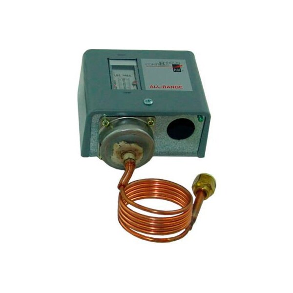 johnson control for low pressure applications. all range control range 20" to 100" (-68 to 690 kpa) differential min 7" (48 kpa) max 50" (345 kpa) pressure connection 36" cap w/ 1/4" flare nut max working pressure 325" (2239 kpa) max over-pressure 100" (690 kpa) limited knob adj (supplied/not assembled) switch action spst (open high) code # p70ab-2c, non-corrosive refrigerants designed primarily for low pressure cut-out control and capacity control on commercial refrigeration and air conditioning applications.