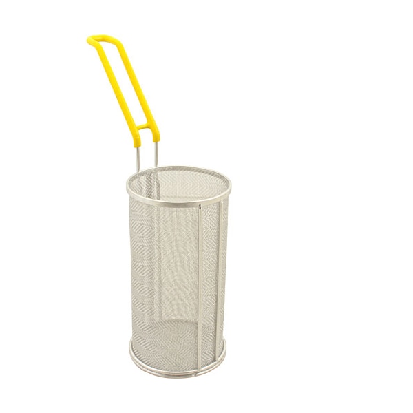 Super-Fine Mesh Pasta Basket 5" Od X 9" H;Coating: Vinyl Handle;Color: Yellow Handle;Height: 9", 229 Mm;Type: Rear Hook;Material(S): Stainless Steel #18/8;Outside Diameter: 5", 127 Mm;Type: Super Fine Mesh;Weight: 1.714 Lb
