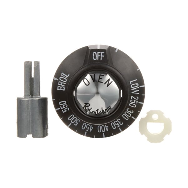 Black Oven Dial For "Bj" T'Stat;[ 2" Dia ] [ Off-Low-250-550-Broil] [Mount .240"] ;[Position 4 Way Insert, ;W/ # 26-1197 Stem Adapter ( Notch Up, Flat Down ).;Vulcan Oven Series 59, 64, 70