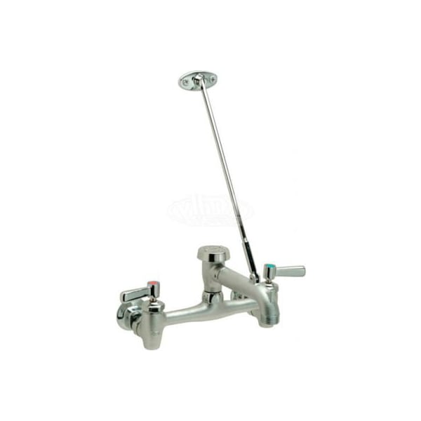 material: brass rough length: 6" spout with hose thread and pail hook plating: chrome-plated type: vacuum breaker spout inlet: 1/2" npt female outlet: 1/2" npt female centers: 8" wall