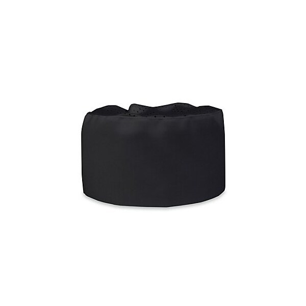 Chef hat,One size fits most,4 in (H),100% spun polyester construction,Mesh top to help keep cool,Form fitting elastic,Black color