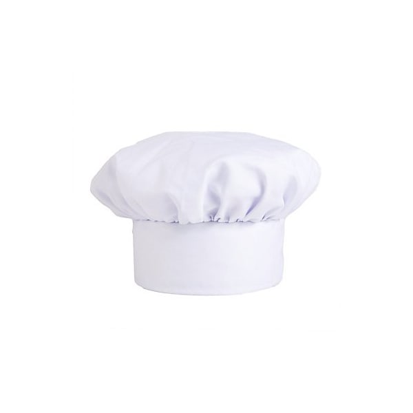 Traditional chef hat,20 in to 24 in hat band,One size fits most,100% spun polyester construction,Adjustable hook and loop closure,White color