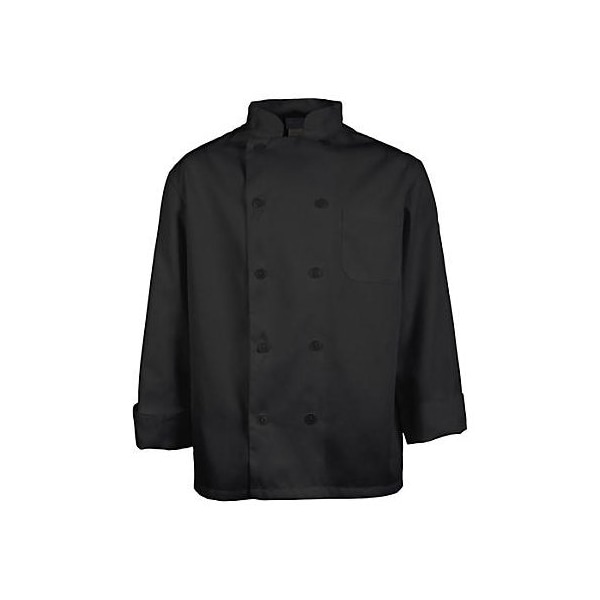 Men's chef coat,Medium,100% spun polyester construction,Melamine button,Chest patch style pocket,Long Sleeve,Black color