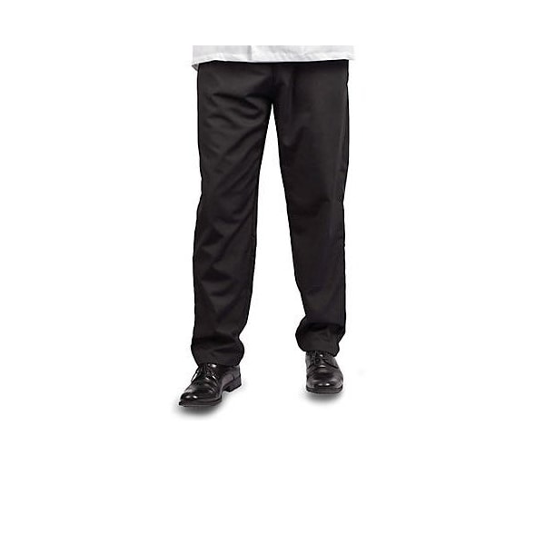 Chef pants,Extra small,100% spun polyester construction,2 side pockets 1 rear pocket,Relaxed fit,Elastic waist with drawstring,Baggy fit with tapered legs,Unisex,Black color