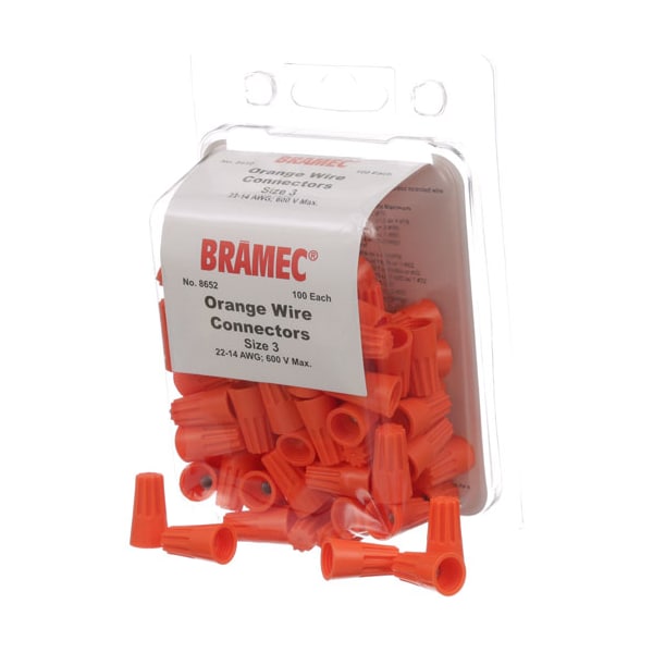 Plastic Wire Nuts, 100/Pk;Max 600V, Max 221 Degrees F;Orange;1 To 2 Wires, #14 Gauge;1 To 3 Wires, #18 Gauge;2 To 4 Wires, #16 Gauge