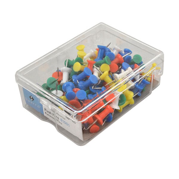 Pins, Push , Asstd Colors, 100-Pk