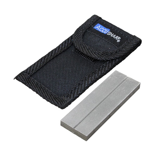 Accusharp Diamond Pocket Stone ;The Accusharp Diamond Pocket Stone Is A Dual-Sided Pocket;Sharpening Stone Featuring A 320-Grit Coarse Diamond;Surface Used For More Aggressive Sharpening, Plus An;800-Grit Fine Diamond Surface Used For Honing And;Finishing. The Diamond Pocket Stone Also Has A Groove Used;For Sharpening All Kinds Of Hooks And Darts. The Aggressive;Cutting Feature Can Be Used To Sharpen All Types Of Steel.;The Pocket Stone Comes Complete With A Handy Accusharp®;Carrying Pouch With A Built-In Belt Loop For Convenience.