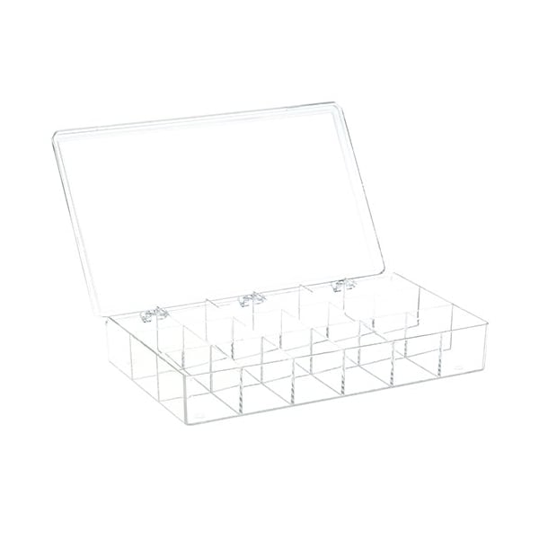 Clear Plastic Storage Box;10-1/2" X 6-3/16" X 1-9/16";18 Compartments