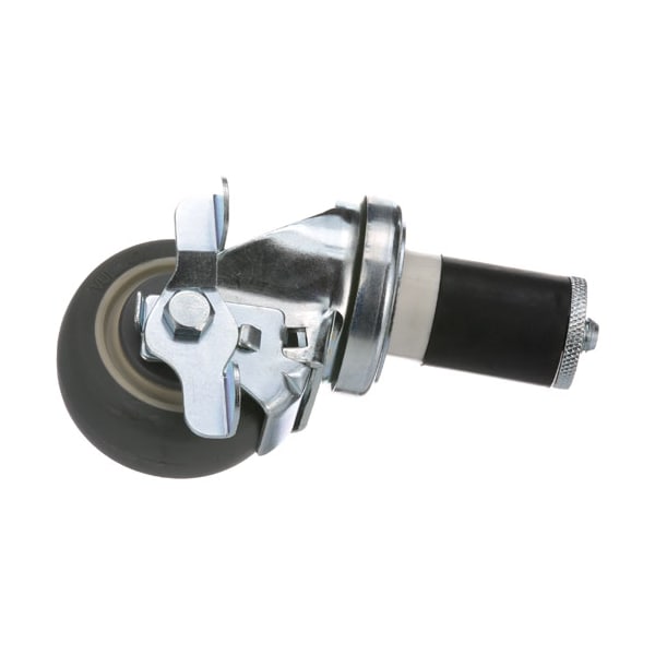 Expansion Stem Swivel Caster W/Brake;For 1 5/8" Od Tubing;Exact Stem Size = 1.450" Od;Wheel Size 3";Tread Width 1 1/4";Bore 3/8" Id;Ball Bearing 3/8" Id;Beige Hub, Grey Polyurethane Tread;Load Height 4 1/4";Max Load Per Wheel Lbs. 250