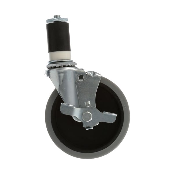 Expansion Stem Swivel Caster W/Brake;For 1 1/2" Od Tubing;Also Fits 1 1/4" Pipe;Wheel Size 5";Tread Width 1";Bore 5/16" Id;Plain Bearing;Grey Rubber;Loasd Height 5 5/16";Max Load Per Wheel Lbs. 125