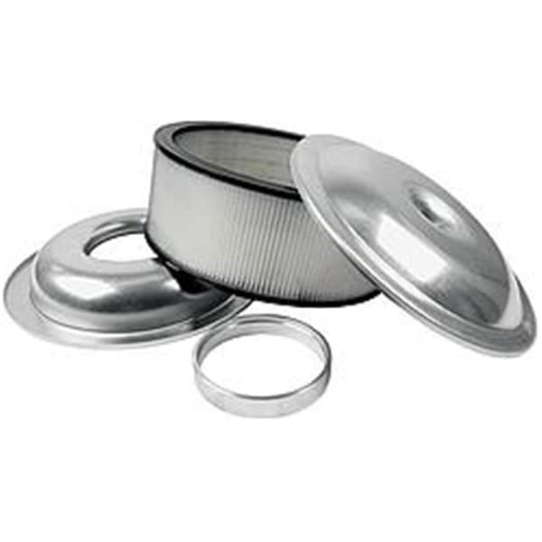 Features -Race and dyno proven air cleaners feature a low profile and free flowing -Design that creates more power over standard flat air cleaner assemblies -Choose from plain or black coated finish lid and base -The 1in spacer in this kit places the bottom of the air cleaner base 5/8in below carb neck sealing flange Specifications - Air Cleaner Top Finish: Plain - Air Cleaner Top Material: Aluminum - Air Cleaner Shape: Round - Air Cleaner Size: 14in - Air Cleaner Paper Element Size: 5in