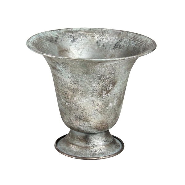 6.75 in. Verdigris Metal Urn Planter, Silver
