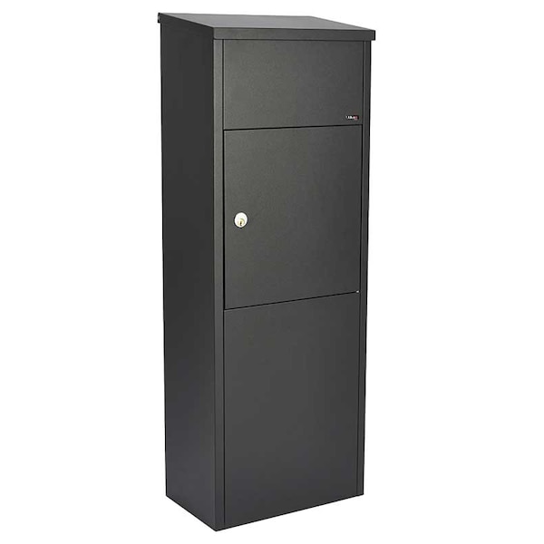 Do you need more room? The Allux 600 is a Top loading Mail/Parcel box made from strong, powder coated 20" gauge steel. It can easily fit up to two weeks of mail and is fitted with a heavy duty standard cam lock. A galvanized mounting base (Product# MB-PLSM-8002) is also available and sold separately to anchor parcel box into the ground. Parcel opening: 10-1/4" x 4" x 11". Color: Black . Allux Series 600 Top Loading Parcel Box in Black