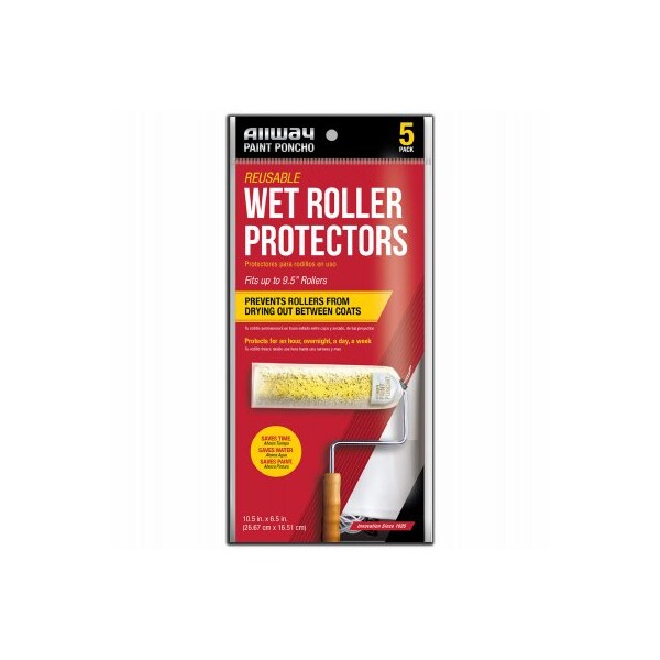 5 Pack Paint Poncho to protect your roller covers when you need to take a break while painting The opening allows you to easily insert your rollers with less mess, while the elastic cord and spring lock allow for easy use and reuse Made with ecofriendly EVA plastic, the frosted appearance becomes more clear when wet, visually showing the protection Once your roller is safely sealed inside the Paint Poncho, the locking system helps protect your tools for hours or even days Protects in seconds, saves paint, water, and time Use with rollers up to 95 in long