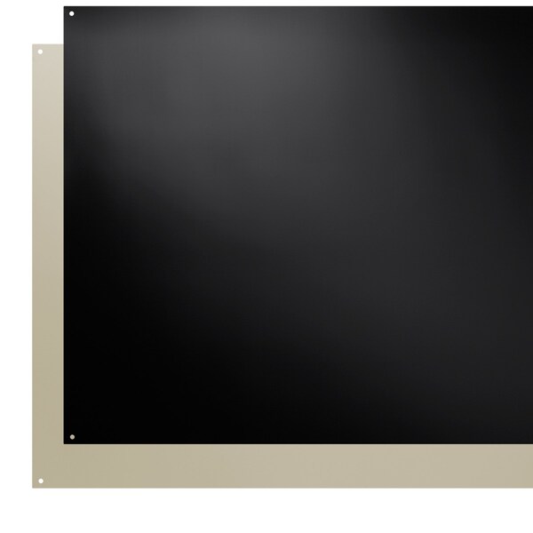 The Broan SP240223 24-inch Metal Backsplash, in reversible bisque/black, completes the look when used with Broanfts range hoods. The aluminum constuction has a durable bisque finish on one side and a durable black finish on the other side. This attractive back splash provides easy clean-up of cooking splatter and it installs easily with only four screws. This unit can also be installed without a range hood