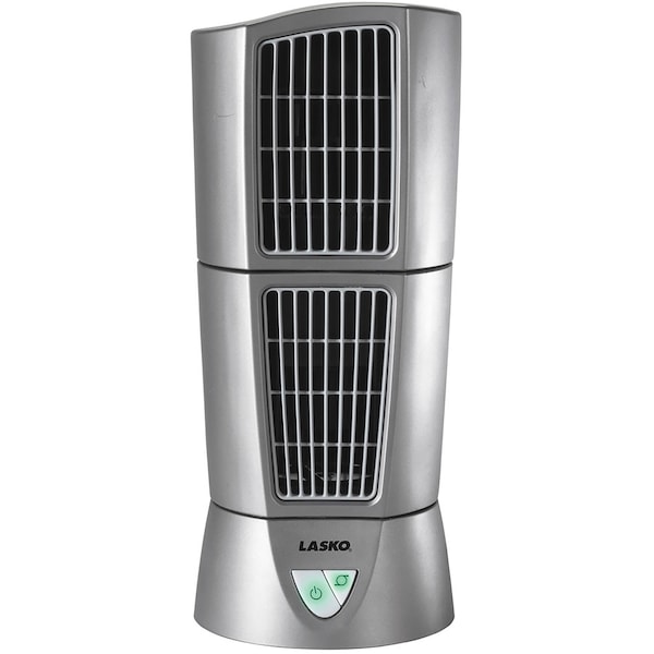 The Lasko desktop Wind Tower fan is a space-saving desktop fan that has a slim 6-inch diameter. The top module oscillates 45 degrees or can be locked in a fixed position. For precision air delivery, pivot and lock the top module so this unit can move the air in two different stationary positions at once. For even greater coverage and versatile air circulation, combine the pivot with oscillation. It is ideal for tabletops, desktops, workshops, health clubs, stores, classrooms, offices, hospitals and other areas where there is limited space. Features include three speeds, front-mounted electronic controls, integrated carry handle and a 120-volt permanently lubricated motor. Its unique look, amazing performance and portability is perfect anywhere you want to keep cool