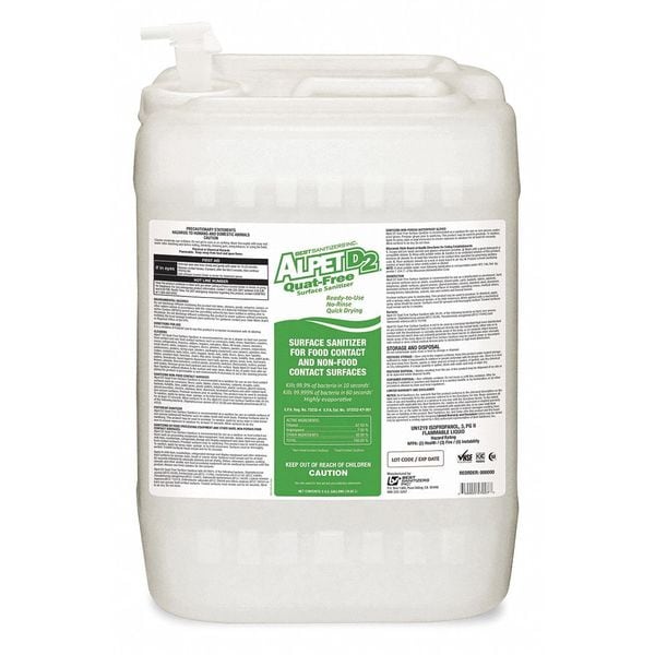 Disinfectant Cleaner and Sanitizer, Primary Chemical Alcohol, Container Type Dispensing Tote, Container Size 5 gal, Ready to Use/Concentrated Ready to Use, Recommended Dilution Ready to Use, Fragrance Alcohol, Cleaner Form Liquid, Surfaces for Use On Hard Non-Porous, Standards EPA Registered, Halal, Kosher, NSF Rated, Wet Contact Time 10 sec to 1 min