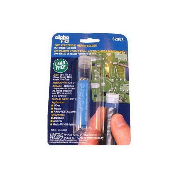 .25 OZ .032 Diameter Electrical Solder Lead Free Rosin Flux Core Silver Bearing 96% Tin 4% Silver .25 OZ Carded Dispenser.