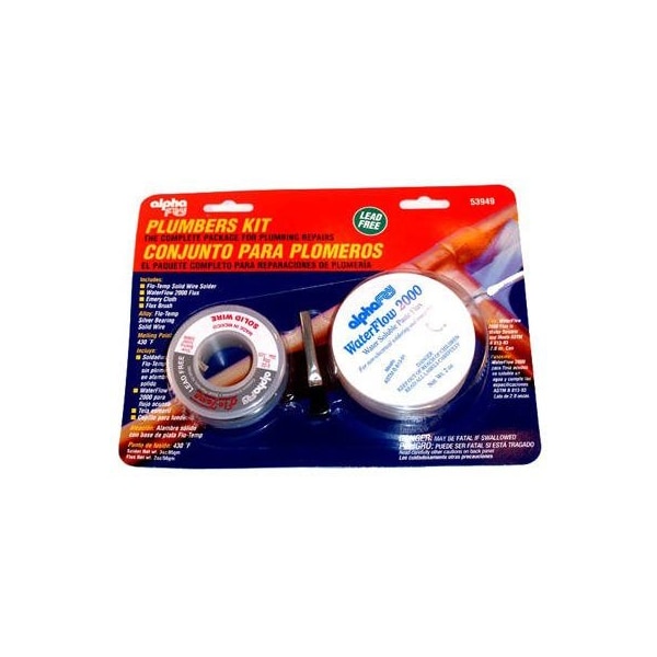 Lead Free Plumbing Solder Kit Complete Package For Plumbing Repairs Includes 3 OZ Lead Free Silver Bearing Solder .125 Diameter AM33945 2 OZ Waterflow 2000 Water Soluble Paste Flux Flux Brush Emery Cloth.