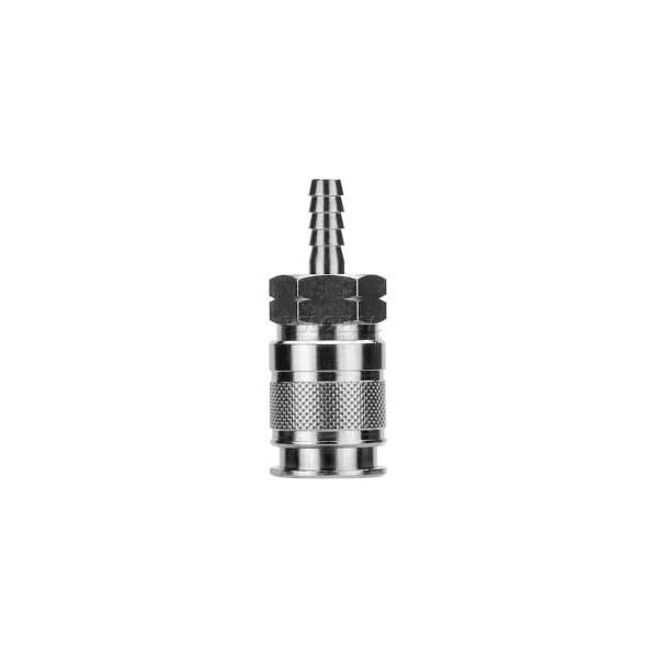 Aignep 1/4" multi-socket x 1/2" hose barb, 80193-08 simplify the world of quick disconnect couplers with the alpha multi-socket. One coupler that works with the most common used plugs in the industry. The body of the multi-socket is manufactured from nickel plated brass and the internal component are all stainless steel. What does all this mean to you