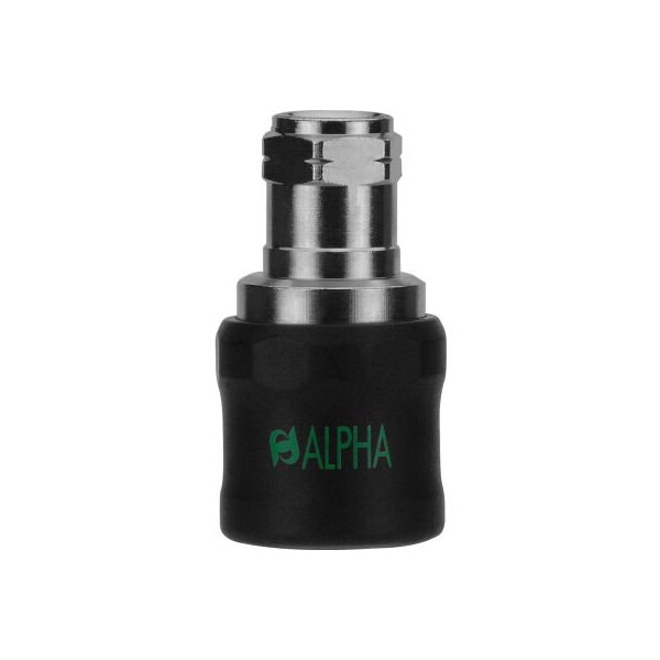 Aignep safety coupler, 80622-04, 1/4" x 1/4" female nptf alpha's innovative one-step release and exhaust safety coupler quickly vents system pressure allowing a safe disconnect. Corrosion resistant stainless steel internal components and nickel plated brass body insures long life and durability. The alpha simple safety coupler is the most lightweight & compact safety coupler on the market.