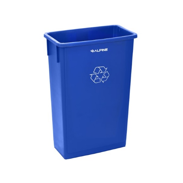 Alpine Industries is stylish and compact, making it easy to fit into any office or commercial space. This blue trashcan features the international symbol for recycling etched on the side in white making it perfect for your recycling needs.