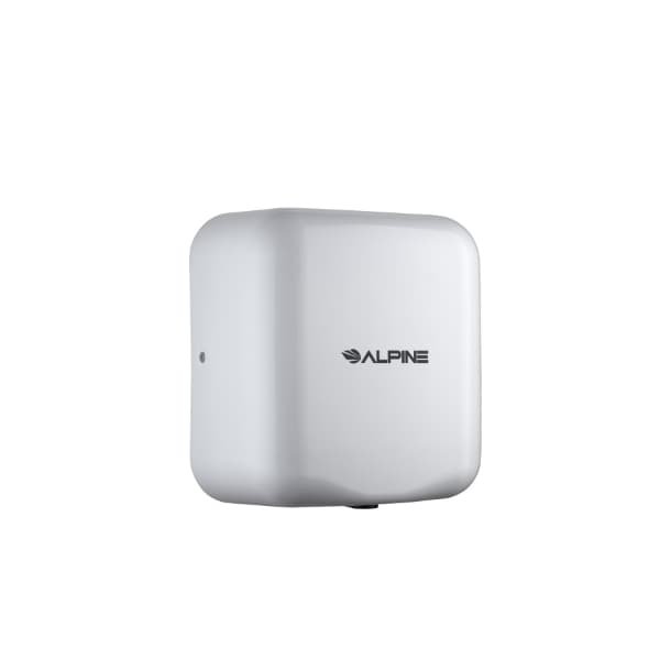 The Alpine Industries Hemlock Hand Dryer 120V white is a high-speed automatic hand dryer that will dry your hands in 10 seconds, faster than many comparable high speed hand dryers and excellent for high traffic bathroom areas. It is also equipped with a plug-in option for quick and easy installation. Hand dryer automatically activates when hands are placed beneath the sensor and stops when they are removed. Also features auto-stop function if hands are not removed after 63 seconds.