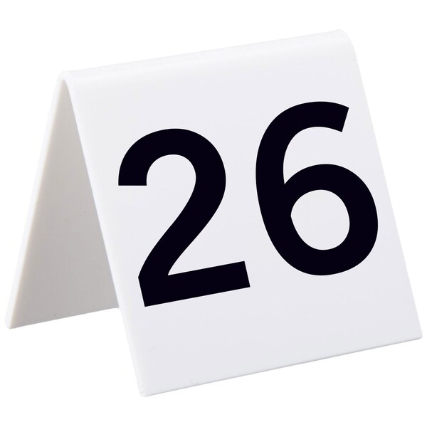 The Alpine Industries Self Standing Number Cards sign set makes it easy to clearly label your tables at any event! These durable, acrylic table number signs are printed on both sides and are self-standing to eliminate the need of an additional card holder.