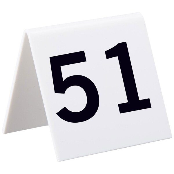 The Alpine Industries Self Standing Number Cards sign set makes it easy to clearly label your tables at any event! These durable, acrylic table number signs are printed on both sides and are self-standing to eliminate the need of an additional card holder.