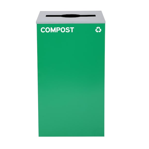 Square Recycling Bin, 29 Gallons, Green Can, Mixed Opening Lid, for Compost