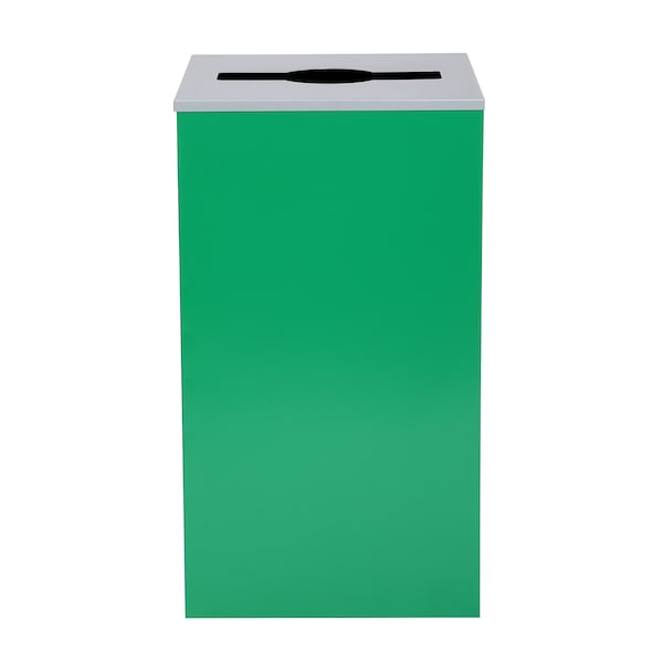 Square Recycling Gin, 29 Gallons, Green Can, Mixed Opening Lid