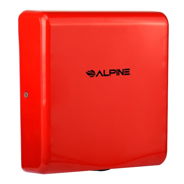 The Alpine Industries Willow Commercial Red High Speed Automatic Electric Hand Dryer is a high speed automatic hand dryer with a unique design offering a blue light for hand drying efficiency, HEPA filter to clean bacteria from intake air and is even equipped with a heat and speed control. With a less than 4 in. D, this hand dryer is ADA compliant without the need of a recess kit and with a powerful 25000 RPM motor, the Willow model will dry your hands in 10-seconds, faster than many comparable high speed hand dryers and excellent for high traffic bathroom areas. Saving thousands of dollars per year in paper towels and electricity, the Willow hand dryer is also equipped with a plug-in option for quick and easy installation. Hand dryer automatically activates when hands are placed beneath the sensor and stops when they are removed. Also features auto-stop function if hands are not removed after 63-seconds.