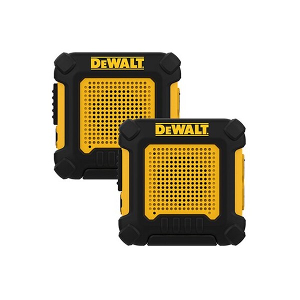 Dewalt, Handsfree Wearable Walkie Talkies, 22 Channels, Water Proof, Anti Slip Design, Voice Prompts, Range Up To 100,000 SQFT, Speaker Microphone Charger Jack, Limited Micro USB Charging Cable With Y Plug, Tunable Belt Clip, Built In LiPolymer Battery, Keystroke Tone Signal