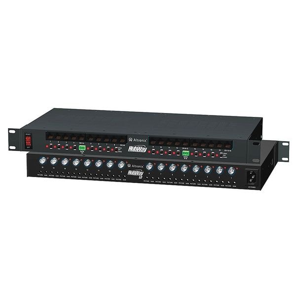 Act UTP Hub W/Power 16Ch W/16 Dc Baluns, Type UTP Transceiver Hub, Rack Mount Kit, Material Steel, Finish Black, Enclosure Depth 8.50 In, Enclosure Width 19.13 In, Enclosure Height 1.63 In, Input Voltage 115VAC/230VAC, Voltage OUTPut 24VAC or 28VAC, OUTPut Current 10A Amps, Input Frequency 50/60 Hz, Standards UL2044 Commercial CCTV, Includes Sixteen (16) HubWayDv Balun/Combiners, Line Cord, Removable Terminal Blocks, Mounting Brackets