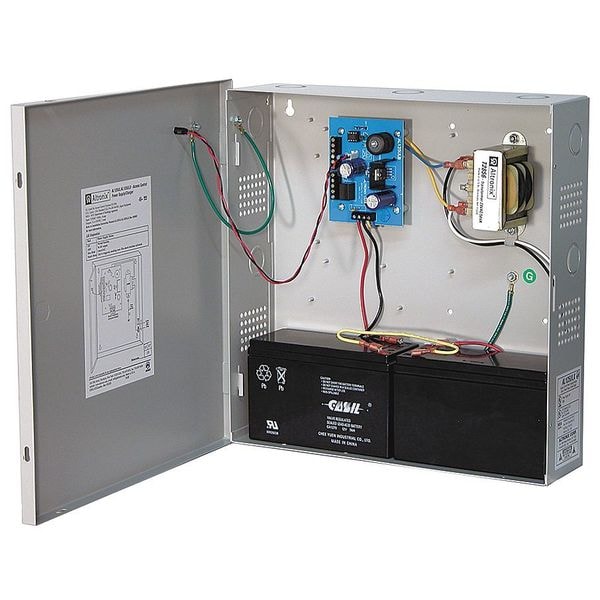 Power Supply 2Out 12Dc Or 24Dc @ 1A, Type Power Supply/Charger Fire Disconnect, Material Steel, Finish Gray, Enclosure Depth 3.50 In, Enclosure Width 7.50 In, Enclosure Height 8.50 In, Input Voltage 115VAC, Voltage OUTPut 12VDC or 24VDC, OUTPut Current 1A Amps, Input Frequency 60 Hz, Standards UL294, CUL, Includes Battery leads, Cam Lock