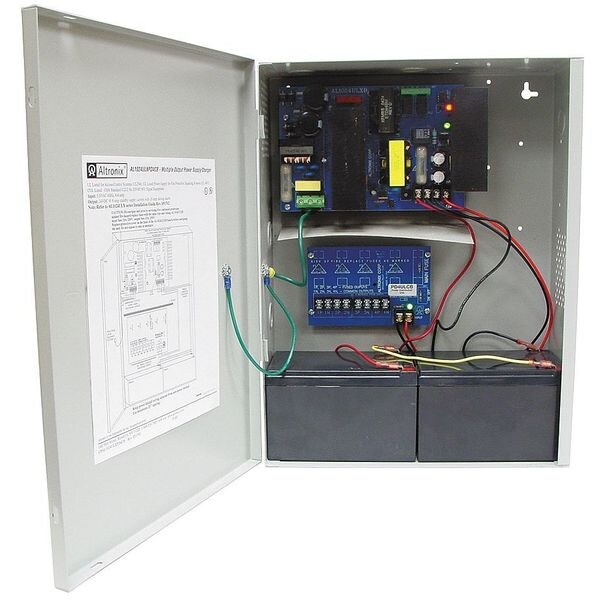 Power Supply 4 Ptc 24Vdc @ 10A, Type Multi-OUTPut Power Supply/Charger, Material Steel, Finish Gray, Enclosure Depth 4.50 In, Enclosure Width 12.00 In, Enclosure Height 15.5 In, Input Voltage 115VAC, Voltage OUTPut 24VDC, OUTPut Current 10A Amps, Input Frequency 60 Hz, Standards UL294, UL1481, CUL, Includes Battery leads, Cam Lock