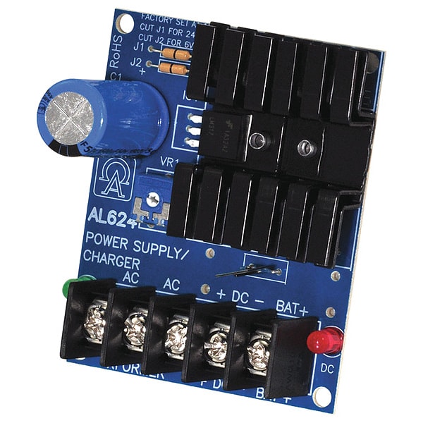 Power Supply 6/12/24 Vdc @ 1.2A, Type Power Supply/Charger, Material Phenolic or Fiberglass, Length 3.00 In, Width 2.50 In, Height 1.50 In, Input Voltage 12/16.5/24VAC, Voltage OUTPut 6VDC or 12VDC or 24VDC, OUTPut Current 6VDC or 12VDC @ 1.2A / 24VDC @ 750mA Amps, Input Frequency 60 Hz, Includes Battery Leads, Tape