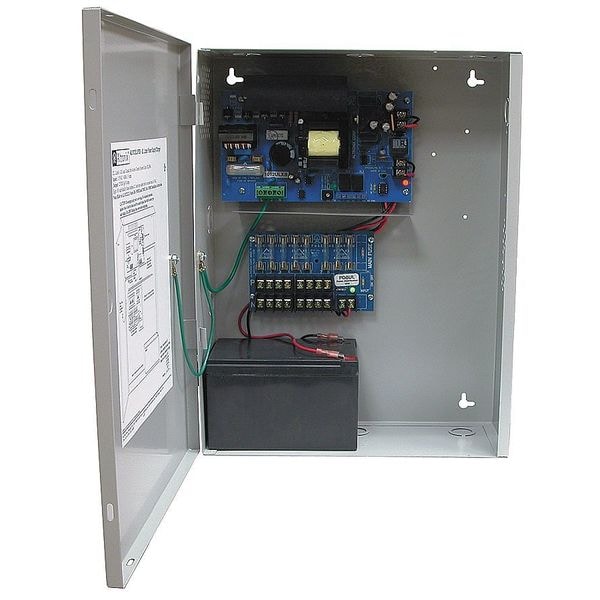 Power Supply 8 Fuse 12Vdc @ 10A, Type Multi-OUTPut Power Supply/Charger, Material Steel, Finish Gray, Enclosure Depth 4.50 In, Enclosure Width 12.00 In, Enclosure Height 15.5 In, Input Voltage 115VAC, Voltage OUTPut 12VDC, OUTPut Current 10A Amps, Input Frequency 60 Hz, Standards UL294, CUL, Includes Battery leads, Cam Lock, Spare Fuse
