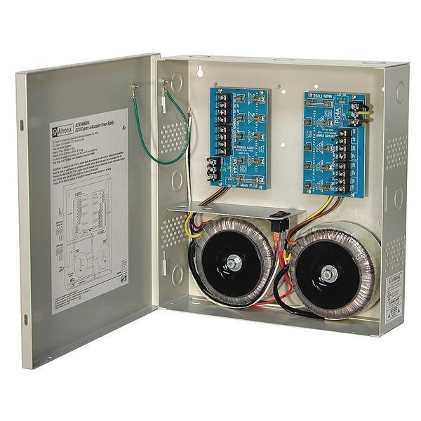 Power Supply 8Fuse 24Vac @ 25A, Type CCTV AC, Wall Mount, Material Steel, Finish Gray, Enclosure Depth 3.25 In, Enclosure Width 13.00 In, Enclosure Height 13.50 In, Input Voltage 115VAC, Voltage OUTPut 24VAC or 28VAC, OUTPut Current 24VAC @ 25A or 28VAC @ 20A Amps, Input Frequency 60 Hz, Standards UL 2044 Commercial CCTV, CUL, CE, Includes Cam Lock, Spare Fuse