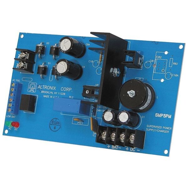 Power Supply 12Vdc Or 24Vdc @ 4A Supervised, Type Power Supply/Charger Board, Material Phenolic or Fiberglass, Length 7.00 In, Width 4.00 In, Height 1.55 In, Input Voltage 24VAC to 28VAC, Voltage OUTPut 12VDC or 24VDC, OUTPut Current 4A Amps, Input Frequency 60 Hz, Includes Battery Leads, Tape