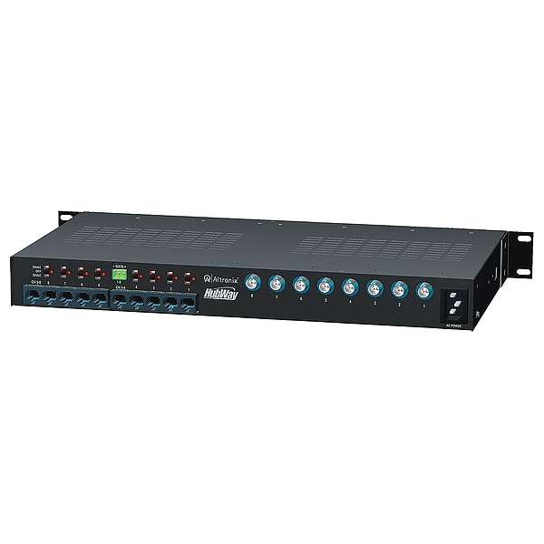 Passive UTP Hub W/Power 8Ch W/8 Dc Baluns, Type UTP Transceiver Hub, Rack Mount Kit, Material Steel, Finish Black, Enclosure Depth 8.50 In, Enclosure Width 19.13 In, Enclosure Height 1.63 In, Input Voltage 115VAC/230VAC, Voltage OUTPut 24VAC or 28VAC, OUTPut Current 5A Amps, Input Frequency 50/60 Hz, Standards UL2044 Commercial CCTV, Includes Eight (8) HubWayDv Balun/Combiners, Line Cord, Removable Terminal Blocks, Mounting Brackets