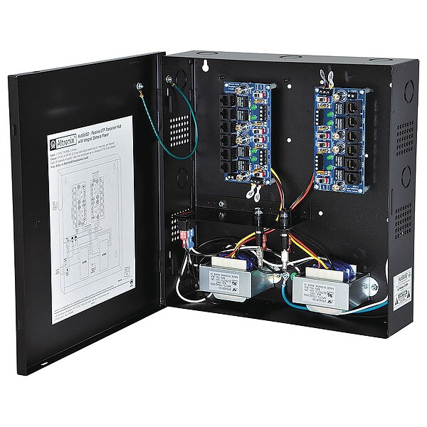 Passive UTP Hub W/Power 8Ch W/8 Ac Baluns, Type UTP Transceiver Hub, Wall Mount Kit, Material Steel, Finish Gray, Enclosure Depth 3.25 In, Enclosure Width 13.00 In, Enclosure Height 13.50 In, Input Voltage 115VAC, Voltage OUTPut 24VAC or 28VAC, OUTPut Current 8A Amps, Input Frequency 60 Hz, Standards UL2044 Commercial CCTV, CUL, Includes Eight (8) HubWayAv Balun/Combiners, Cam Lock