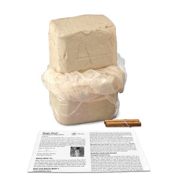 Air Dry Magic MudĀ® Moist Clay Multi-Project Pack, 25 lb. clay features natural reusable clay to encourage unlimited discovery, sensory motor development, and self-expression. Project pack was developed by a classroom teacher, and includes step by step instructions, an 8" wire cutter, and 25 lbs. of moist clay. Create pieces using the clay, then add water to air-dried objects to turn the clay into a 'magic mud' again!