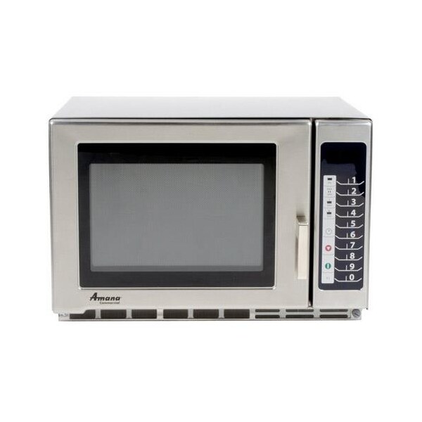 Commercial microwave oven; 14 1/8 in (W) x 16 1/4 in (D) x 8 7/8 in (H) interior dimensions; 21 3/4 in (W) x 21 in (D) x 14 3/8 in (H) exterior dimensions; Heavy duty stainless steel exterior; Stainless steel interior with sealed ceramic shelf; 1,200W output; 1.2 cu ft cabinet capacity, can accommodate platters up to 14 in; LED display; 4 cooking stages; 5 power levels; 10 touchpad controls; 100 programmable menu items; Defrost setting; Stackable; Braille touch pads for ADA compliance; Features removable air filter and clean filter reminder to reduce oven component wear; Double quantity button for 2-portion runs; Transparent door with interior cavity lighting; For medium volume applications; 5 ft power cable with NEMA 5-20P; 120V/60Hz/20A/1-Ph; ETL, cETL listed; Replaces model RFS12MPSA